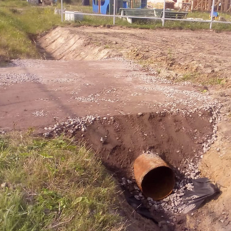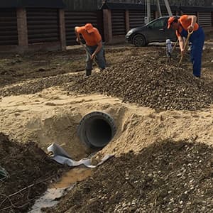 - Подготовка канавы в ручную для укладки трубы;