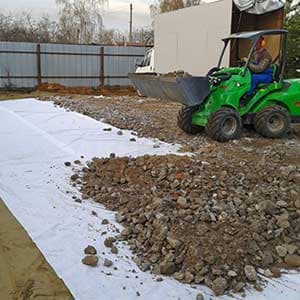 - Застилка геотекстилем 200 мг;