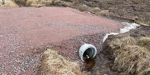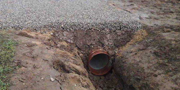 Заезд на участок с пластиковой трубой под тяжелую строительную технику массой до 30 тонн.